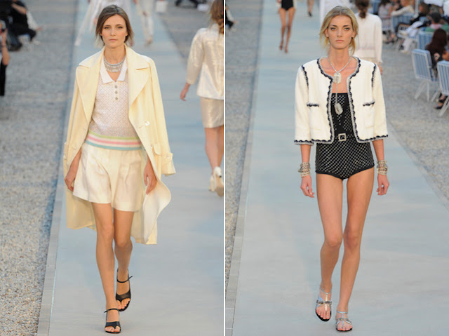Tegnap már mutattunk nektek néhány képet a Chanel Cruise kollekcióból ITT, most pedig következzen a több, mint hetven szettet felvonultató divatbemutató néhány képkockája. A fekete, fehér, levendulalila és halványsárga színekből álló kollekció egészen elképeszően sikerült: megjelent benne, minden, ami a Chanel klasszikusságát idézi (gyöngysorok, steppelt holmik, kerek nyakú tweedblézerek, a kamélia) de rengeteg új ötletet is magába foglalt (főleg a cipők, egyrészes fürdőruhák és a kiegészítők terén). A helyszín a világ egyik legdrágább szállodája, a Hotel du Cap-Eden Roc volt Antibes-ben.