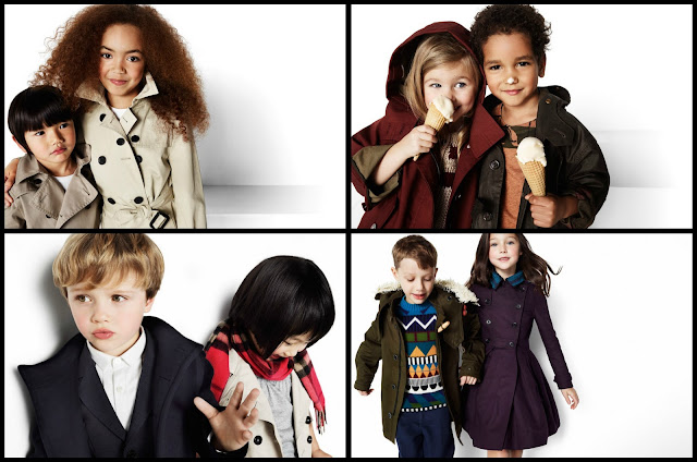 A Burberry gyerekkollekciójában a fagyi csak egy bájos fotózási kellék volt - a gyerekek pózoltak még eprekkel és sütikkel is a felnőtt kollekció miniméretűvé alakított darabjaiban. Ennivalóan bájosak a mosolygós huncut gyerkőcök minifelnőttekké öltöztetve, gyanítom, hogy minden nő szívét megdobogtatják ezek a képek - nyilván ez is volt velük a cél.
