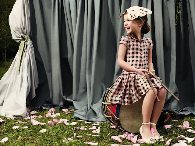 Hát persze, hogy übercuki a Dior Baby 2012-es tavaszi/nyári kollekciója - édes, foghíjas mosolyú gyerekek szórakoznak a kertben, rózsaszirmok ropognak a talpuk alatt és egy kertbéli színházi előadás a háttér (ugye mindenkinek eszébe jutott az Én, Pán Péter Johnny Deppel?). Természetesen a ruhák is elbájolóak: olyan kék, fehér púderszín és pink szoknyákban és ruhácskákban pózolnak a kislányok, amelyekből egy-egy felnőtt verziót én is szívesen elfogadnék (például az utolsó kép kék, fodros ruhája, vagy a második fotón a kockás szoknya tökéletes lenne egy nagyobb méretben is).